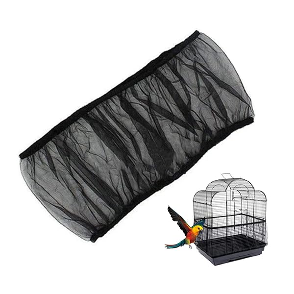 YFFSFDC 鳥かご ケージ カバー メッシュ ネットカバー 防塵 エサの飛び散り防止 伸縮 通気性 洗濯可能 (M, 黒)