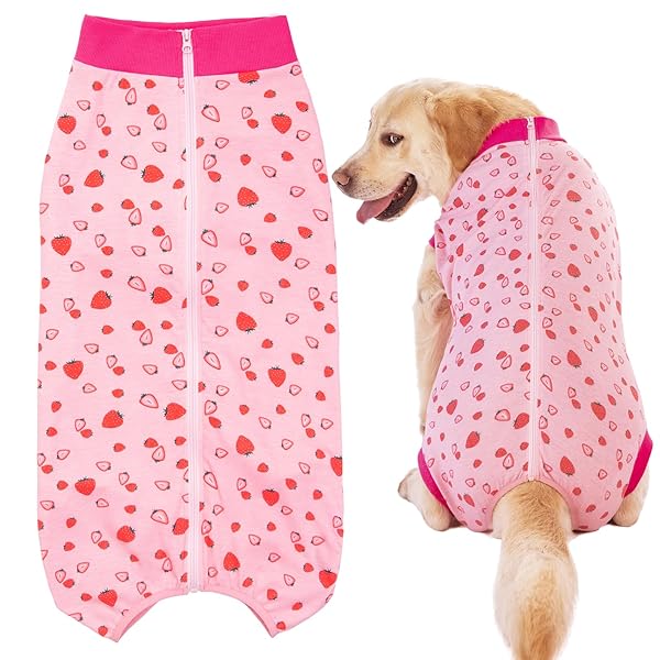 KUVEELA PET 大型犬 中型犬 術後服 メス オス 犬 手術後 服 犬用術後ウェア 介護服 ペット服 エリザベスカラー 避妊 離乳 傷口保護((イチゴ柄)ロースレッド 6L)