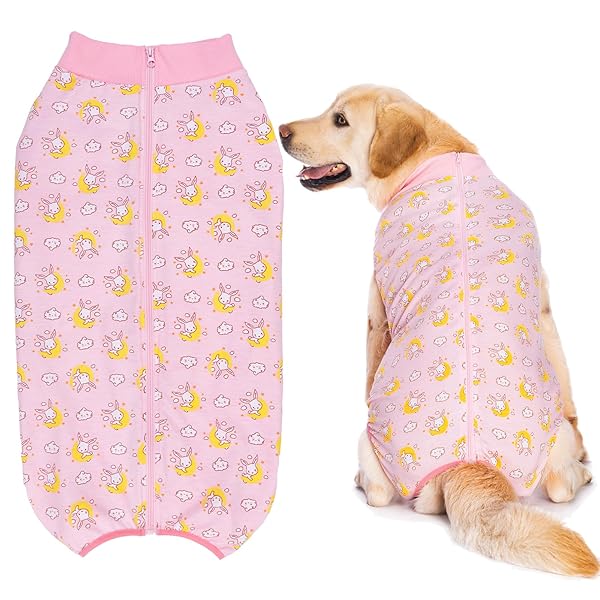 KUVEELA PET 大型犬 中型犬 術後服 メス オス 犬 手術後 服 犬用術後ウェア 介護服 ペット服 エリザベスカラー 避妊 離乳 傷口保護((ウサギ柄)ピンク 6L)