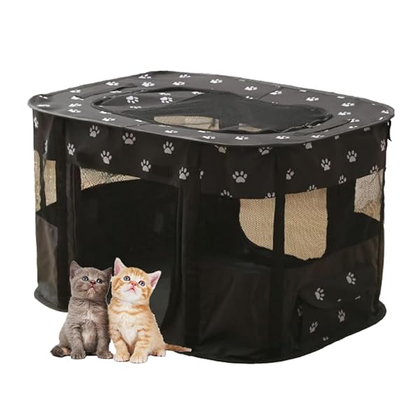 長方形 折りたたみ式 ペットサークル 収納バッグ付き 猫 犬用 ケージ 組み立て簡単 屋根付き メッシュサークル コンパクト 出産用 防災 軽量 室内室外兼用 (S(70*55*45cm), ブラック)