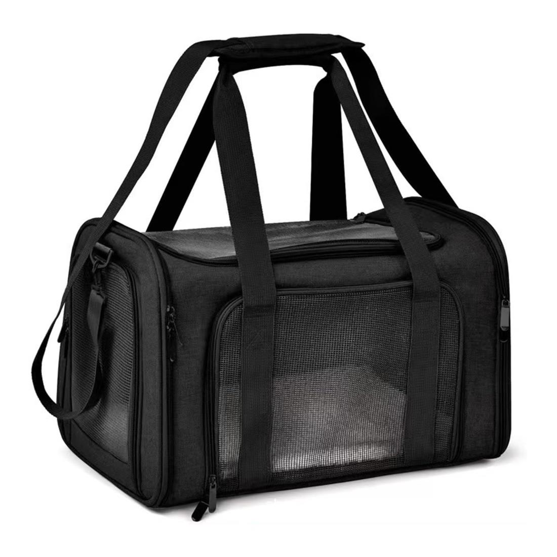 BTtime ペットキャリーバッグ 猫用キャリングバッグ 折りたたみ式 ペットキャリー 中・大型猫用・小型犬 飛び出し防止 傷防止 ベルト脱着可 洗えるマット 通気性 軽量 大容量 耐荷重6KG お出かけ/旅行/ドライブ/防災/避難用 (ブラック)