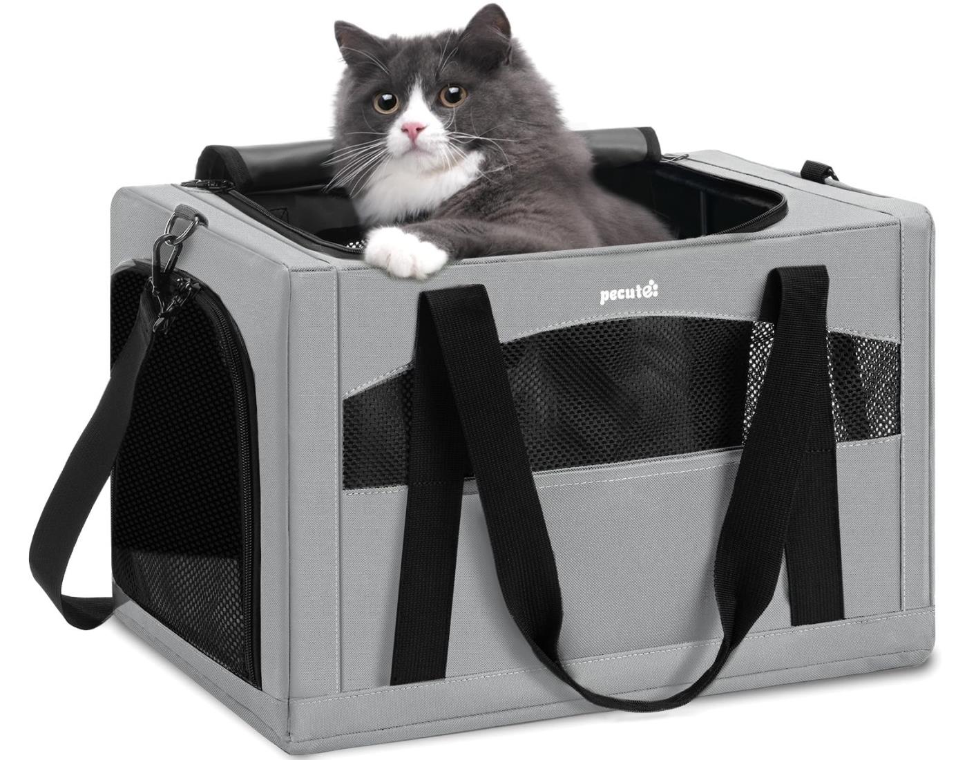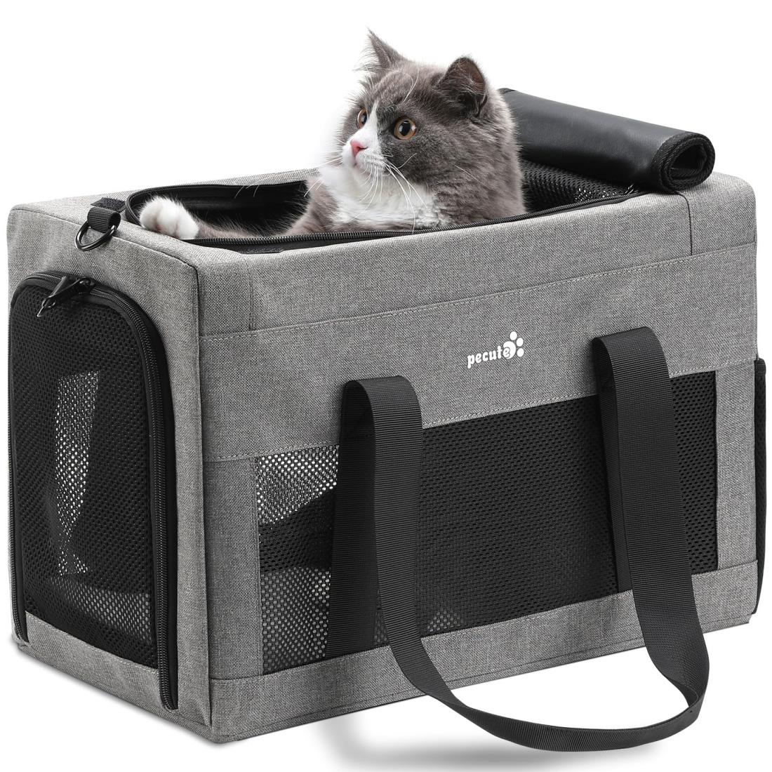Pecute ペットキャリー 猫キャリー バッグ 手提げ 猫 キャリー ショルダー 猫 きゃりーバッグ 猫 ウサギ 小型犬 小動物用 リュック 通気性 折りたたみ お出かけ ドライブ 旅行 通院 防災 避難用 ライトグレー