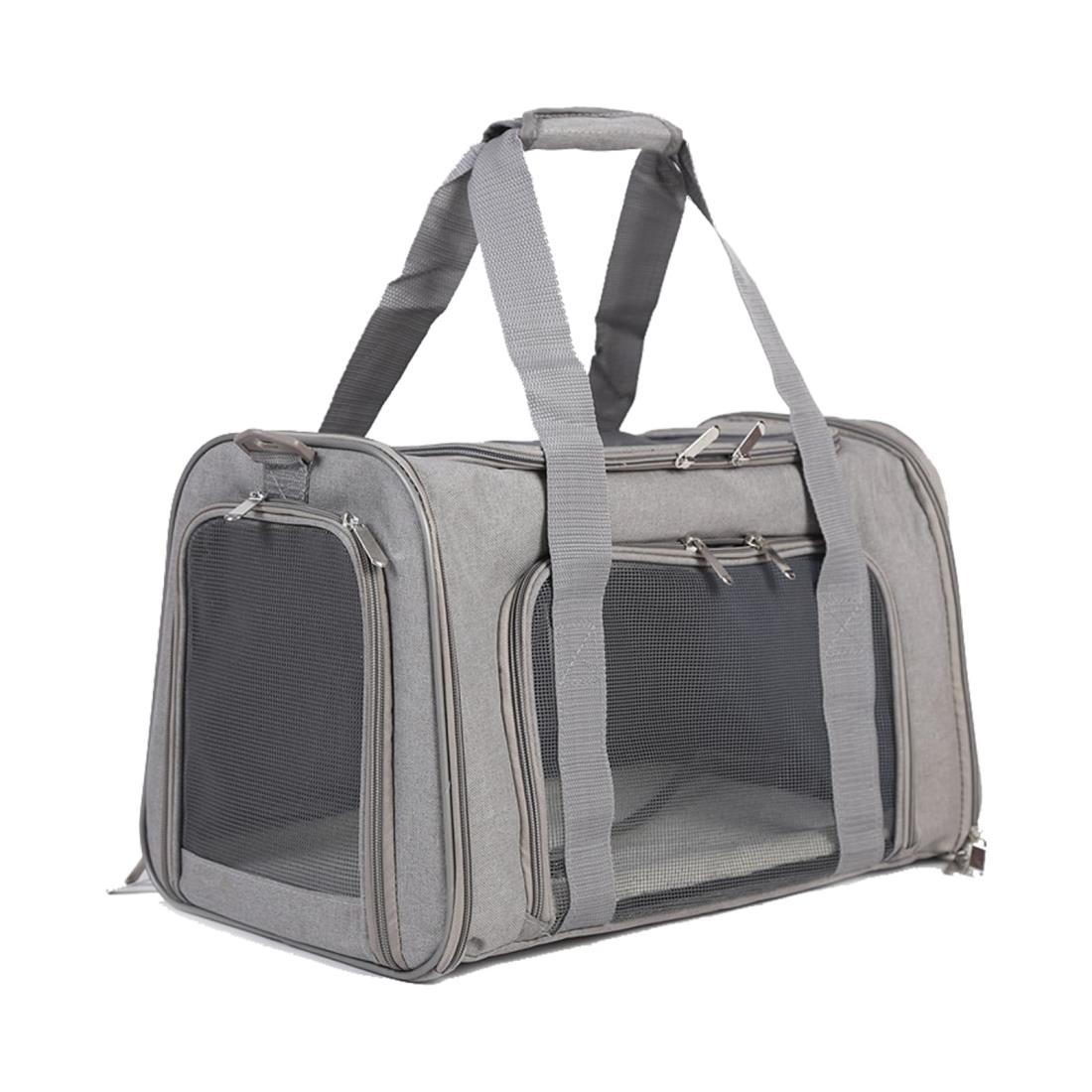 ONEDONE ペット キャリーバッグ マット付き 小型犬 猫用 キャリー ショルダー 手提げキャリーバッグ 通気性 2WAY ペットハウス ケージ 折り畳み お出かけ ドライブ 旅行 通院 防災 避難用 キャリー (グレー)