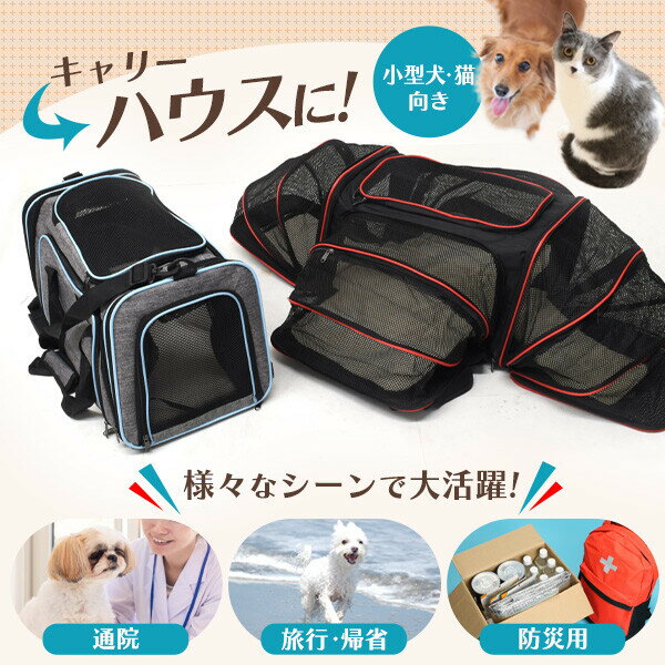 キャリー ペット ハウス 折りたたみ式 ペットキャリーバッグ サークル ペット 多頭買い 多頭 犬 猫 いぬ ねこ イヌ ネコ 防災 非常用 震災 ペット避難 小型犬 防災用 車
