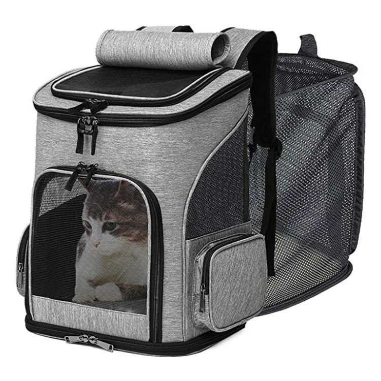 【猫用 犬用 通気性 旅行 通院 防災 避難用】ペット キャリーバッグ リュック メッシュ窓 通気性 拡張可能 2WAY ペットハウス ケージ 折り畳み お出かけ ドライブ キャリー カーキ 猫 キャリーバッグ 猫 キャリーケース ペットキャリーバッグ 猫 リュック 猫キャリーバッグ