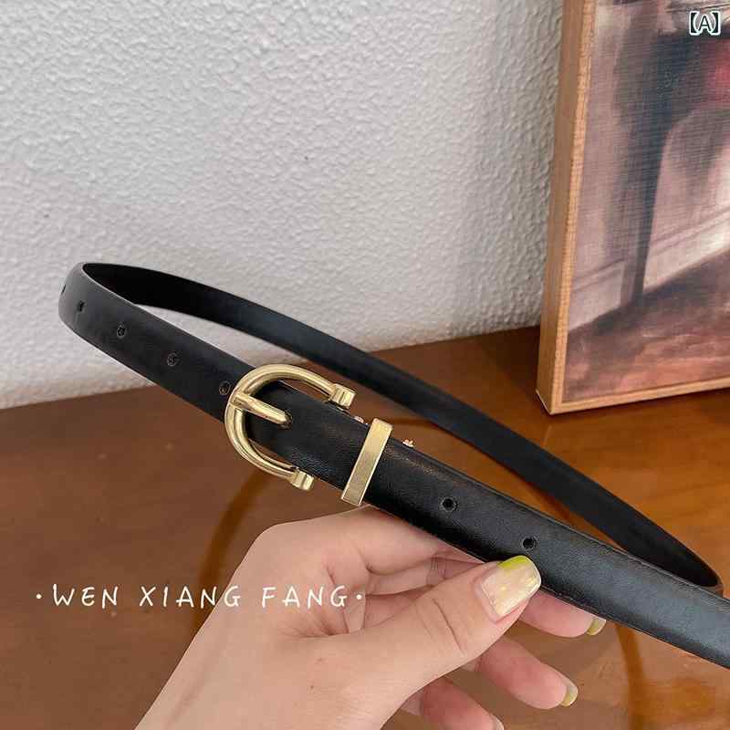 ペット リード 韓国 レトロ 小さな 細い ベルト 女性 ファッション シンプル ジーンズ 装飾 ブラック キャメル ブラウン