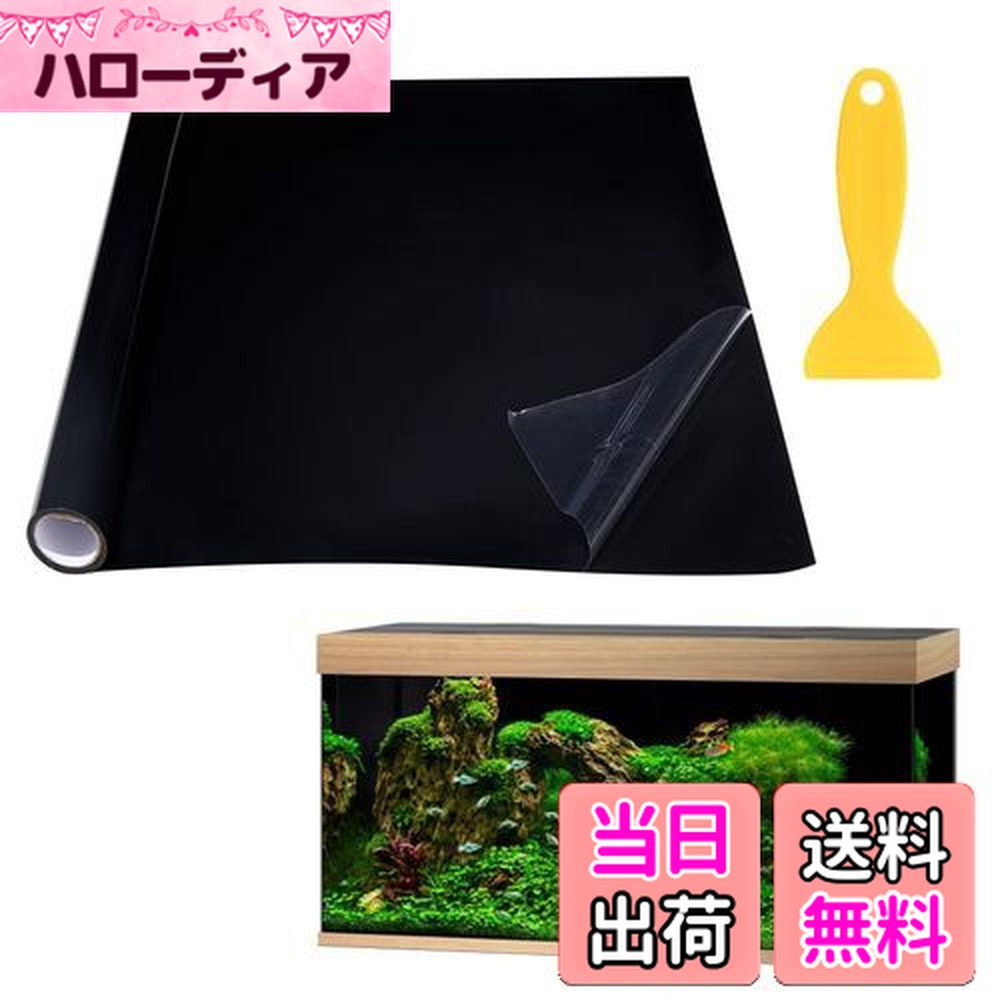 水槽背景ステッカー 背景シート 黒 スクリーンフィルム 静電気吸着 接着剤不要 ヘラ付き 貼り付け簡単 PVC製 魚槽用 静電気シート 熱帯魚 タンク 水族館 水槽 背景ポスター 水槽の黒い