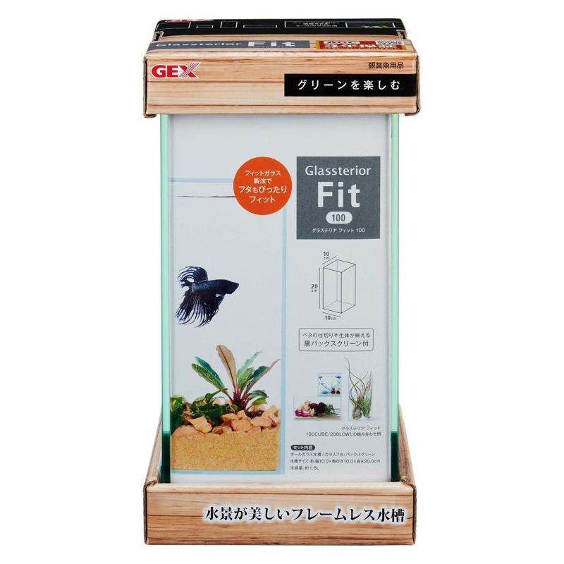 ジェックス GEX AQUARIUM グラステリアフィット100 ガラスフタ・バックスクリーン付 フィットガラス製法 ミスト式対応 フレームレス水槽W10×D10×H20cm 約1.6L