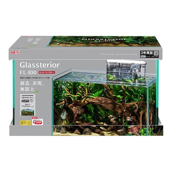 グラステリアFL400 スリムフィルターセットブランドGEX色ーモデル4972547044037商品説明※詳細は会社概要ページにてご確認くださいませ。【商品概要】抜群のろ過能力、手を濡らさずマット交換できるスリムフィルターをセット 水槽内を明るく照らす、CLEAR LED フラッティ(別売)が取り付けられる、専用フタ「アクアカバー」付●DC-Xポンプ採用のスリムフィルターは静音・省エネ(自社調べ) ●静音・省エネDC-Xポンプを搭載したスリムフィルターDC-X S2をセットしたオールガラス水槽セット創造、表現、無限大 「透明感」にこだわるグラステリア水槽シリーズ。 水槽内を明るく照らす別売のクリアLEDフラッティが取付けられる、専用フタ「アクアカバー」付き。グラステリアはガラスと、ガラス同士を接着するシリコンだけでできています。そのシンプル構造がグラステリアの美しさの秘密。使い続けるとその差をはっきりと感じることができます。職人の「こだわり」から生まれたすばらしい技の集結がインテリア水槽「グラステリア」になりました。 独自の製造技術でガラスの接合面に使うシリコンを美しく塗布する「コーナークリア製法」で境目の美しさが違う!鏡面加工されたガラス断面は輝きとともに接合の強度をアップさせます。【製品仕様】水槽サイズ:約幅40×奥行20×高さ25cm、ガラス厚:4mm、セット時サイズ:約幅40×奥行25.5×高さ28.5cm、水容量:約17L セット内容:オールガラス水槽、外掛け式フィルター、アクアカバー、クッションマット 交換ろ過材:スリムフィルター用交換ろ過材 本製品にはUSBアダプターは付属していません。当社純正品(GEX「USBアダプターG-1A」)もしくは市販のUSBアダプターをお買い求めください。【商品説明】【商品詳細】ブランド:GEX商品種別:水槽 (ペット用品)商品名:グラステリアFL400 スリムフィルターセット製造元:ジェックス商品番号:4972547044037商品内容:FL400色:ー商品タイプ:フラット【当店からの連絡】