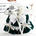 ペット品 洋服 ワンちゃん 猫ちゃん ロリータ プリンセス ドレス おしゃれ 秋服 猫 ダーク グリーン パレス ゴールド 起毛 小型 犬 テディ ペット