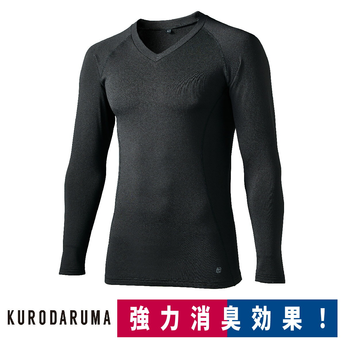 インナー 長袖 Vネック アンダーレイヤー 防寒 温活 裏起毛 消臭 クロダルマ 47142