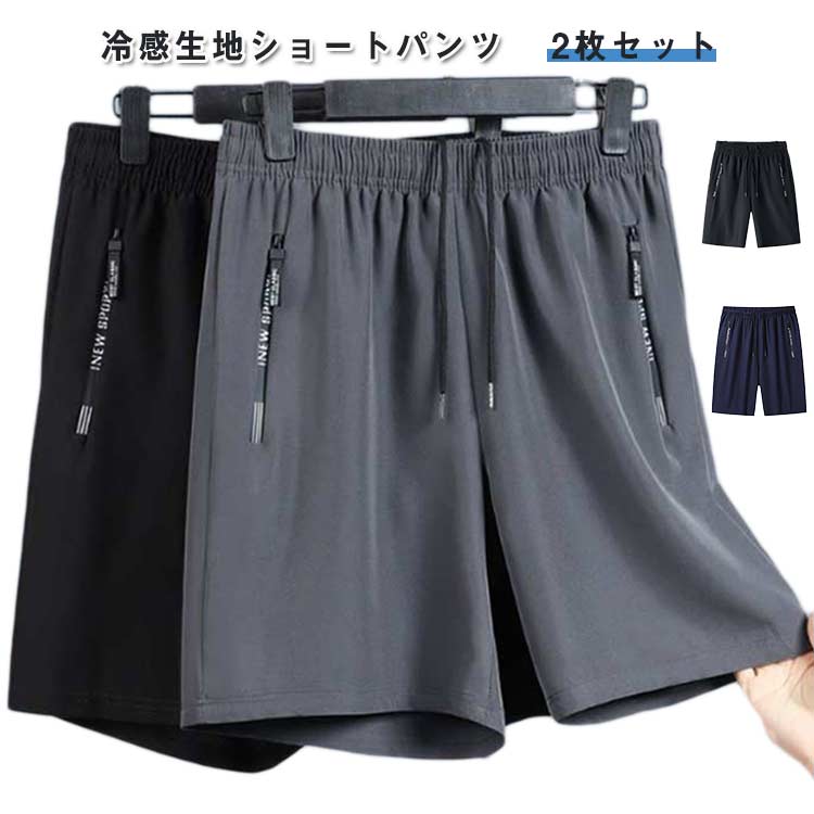 【送料無料】薄手 軽量 速乾 無地 スポーツパンツ 吸水速乾 涼しい ストレッチ ハーフパンツ 夏 接触冷感 2枚セット メンズ ショートパ