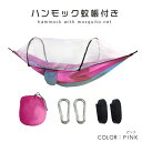 ハンモック 蚊帳 屋外 パラシュート生地 ロープ付き メッシュカバー付 ピンク