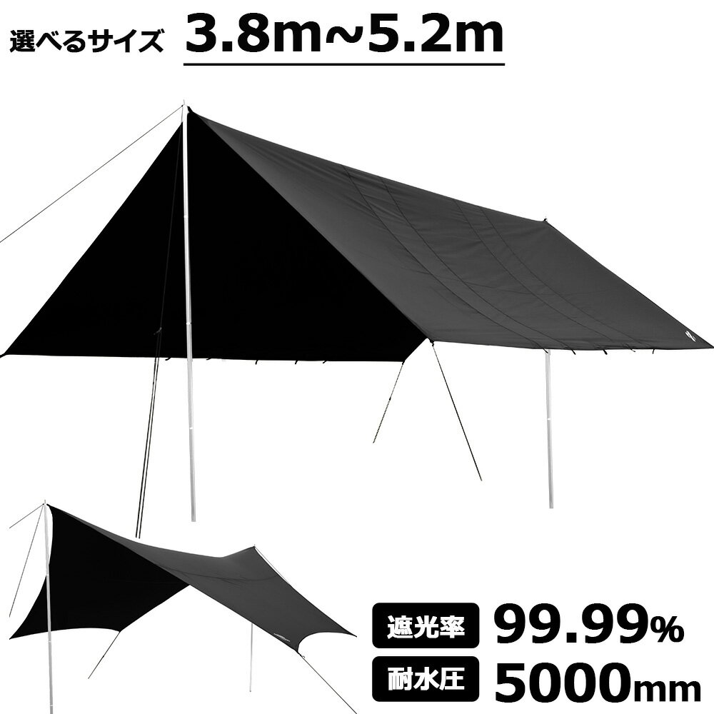 Soomloom レクタタープ ヘキサタープ 大型 選べるサイズ タープ ブラック タープ 黒 ソーラーブロックコーティング UPF50+ UVカット 日除け 紫外線対策 サンシェード キャンプ アウトドア スームルーム タープテント 黒 天幕 大きいサイズ