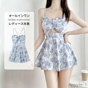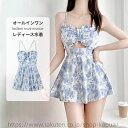 オールインワン 水着バスト 盛れる レディース ワンピース 水着 体型カバー 水着 レディース リゾート ショートパンツ一体型 バックシャン 新作