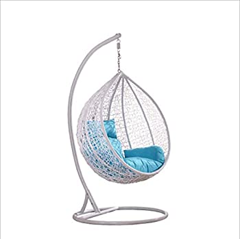 【中古】Island Gale ハンギングバスケットチェア アウトドアフロントポーチ家具 スタンドとクッション付き (ホワイト/ブルー)