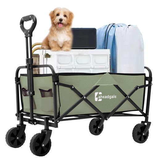 AHEADGALEキャリーカートキャリーワゴン耐荷重100kg折りたたみアウトドアワイドタイヤ搭載120L大容量コンパクトBBQ釣りキャンプ(グリーン(M))
