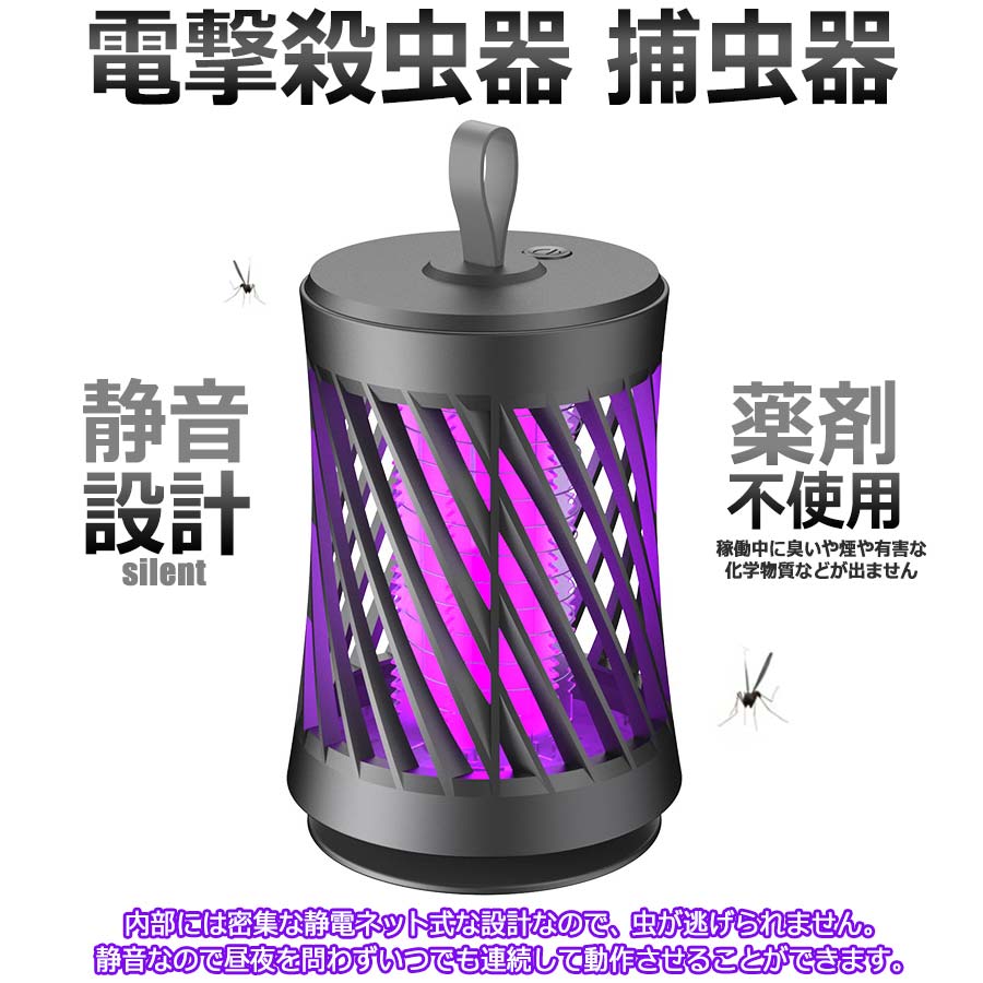 電撃殺虫器 殺虫灯 蚊 フライ キラー アウトドア 屋内 USB充電式 蚊 ザッパー 飛ぶ昆虫トラップ LED誘虫灯 UV光源吸引式 ポータブル コードレス 虫 ザッパー 虫 蚊取り器 家庭 テラス キャンプにも