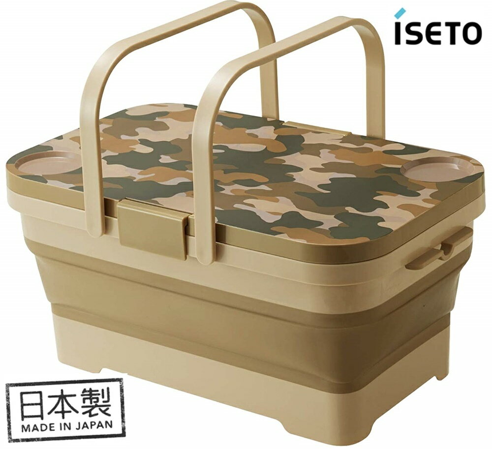 ISETO (伊勢藤) 折りたたみバスケット&テーブル Milargo(ミラーゴ) 【商品説明】 やわらか素材のたためるバスケット。 バスケット部分には水を溜められるから、飲み物を冷やしたり、洗い物などに便利。 水抜き栓付きだから排水もカンタン。 フタ部分は取り外してミニテーブルにできます。 使わない時はたたんでコンパクトに収納。 道運びに便利な持ち手付き。 キャンプやバーベキューなどのアウトドア用にはもちろん、防災用にも。 【商品仕様】 サイズ:組み立て時/約幅46.3×奥行29×高さ21.4cm、 折りたたみ時/約幅46.3×奥行29×高さ8.6cm 素材・材質:[本体・水抜き栓]熱可塑性エラストマー [枠・底・ハンドル・止め具]ポリプロピレン [テーブル]ABS樹脂 [脚]鉄 ユニクロメッキ 生産国:日本 容量:約15L 耐熱温度:熱可塑性エラストマー・ポリプロピレン/100度、ABS樹脂/80度 耐冷温度:-20度