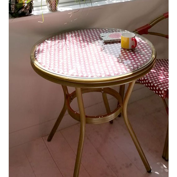 [送料無料]ラウンドテーブル単品販売「プレジール」 レッド(PLS-R70-RED)自宅がパリのオープンカフェに。新婚旅行で行ったヨーロッパの街並み。雑誌で見かけた素敵なカフェ。「あの雰囲気を再現するにはどうしたらいいんだろう…」そんな風に考えている方も多いのではないでしょうか?実際に欧米のカフェで使われている「Pleaisir(プレジール)」シリーズは、バイヤーがたまたま休暇で訪れたフランスのニースにあるカフェで、一目ぼれしたものなのです。日本にはなかなかない形とカラーリングは、カフェの本場で長く愛用され、継承されてきた、スタンダードなデザイン。実際に座ってみると、見た目の高級感に反して軽く、急な雨でも水はけ抜群。テラス席に置きっぱなしでも華やかさを保つことができる高い機能性も、長く愛用されてきた理由だとわかるのです。※北海道・沖縄・離島は別途送料が必要となります。サイズ(約)幅 700×奥行 700×高さ 745mm重量(約)8.7kg材質アルミフレーム・PEラタン・強化ガラスカラーレッド仕上げ粉体塗装(フレーム部分)組立区分組立品組立目安時間2人で20分※写真はイメージです。■お届け地域について ・北海道、沖縄、離島へのお届けは、追加送料(実費)をいただきます。ご注文/お問い合わせをいただきましてからお見積りします。 ■メーカー直送品のため、下記サービスはお受けできません。・お届け時間帯指定(午前・午後のご希望は承りますが、状況によりずれる場合があります。夜間指定はできません)・一部の郡部での日曜・祝日指定・メッセージカードの添付