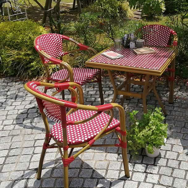 [送料無料]スクエアテーブル3点セット「プレジール」 レッド(PLS-S70-3PSET-RED)自宅がパリのオープンカフェに。新婚旅行で行ったヨーロッパの街並み。雑誌で見かけた素敵なカフェ。「あの雰囲気を再現するにはどうしたらいいんだろう…」そんな風に考えている方も多いのではないでしょうか?実際に欧米のカフェで使われている「Pleaisir(プレジール)」シリーズは、バイヤーがたまたま休暇で訪れたフランスのニースにあるカフェで、一目ぼれしたものなのです。日本にはなかなかない形とカラーリングは、カフェの本場で長く愛用され、継承されてきた、スタンダードなデザイン。実際に座ってみると、見た目の高級感に反して軽く、急な雨でも水はけ抜群。テラス席に置きっぱなしでも華やかさを保つことができる高い機能性も、長く愛用されてきた理由だとわかるのです。※北海道・沖縄・離島は別途送料が必要となります。サイズ(約)テーブル/幅70cm、奥行き70cm、高さ74.5cmチェア/幅58cm、奥行き60cm、高さ82cm(座高45cm)重量(約)テーブル/10.7kgチェア/4kg(1脚)材質アルミフレーム・PEラタン・強化ガラスカラーレッド仕上げ粉体塗装(フレーム部分)組立区分テーブル/組立品チェア/完成品組立目安時間テーブル/2人で20分※写真はイメージです。■お届け地域について ・北海道、沖縄、離島へのお届けは、追加送料(実費)をいただきます。ご注文/お問い合わせをいただきましてからお見積りします。 ■メーカー直送品のため、下記サービスはお受けできません。・お届け時間帯指定(午前・午後のご希望は承りますが、状況によりずれる場合があります。夜間指定はできません)・一部の郡部での日曜・祝日指定・メッセージカードの添付