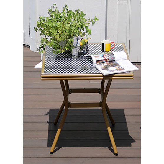 [送料無料]スクエアテーブル単品販売「プレジール」 ブラック(PLS-S70-BLK)自宅がパリのオープンカフェに。新婚旅行で行ったヨーロッパの街並み。雑誌で見かけた素敵なカフェ。「あの雰囲気を再現するにはどうしたらいいんだろう…」そんな風に考えている方も多いのではないでしょうか?実際に欧米のカフェで使われている「Pleaisir(プレジール)」シリーズは、バイヤーがたまたま休暇で訪れたフランスのニースにあるカフェで、一目ぼれしたものなのです。日本にはなかなかない形とカラーリングは、カフェの本場で長く愛用され、継承されてきた、スタンダードなデザイン。実際に座ってみると、見た目の高級感に反して軽く、急な雨でも水はけ抜群。テラス席に置きっぱなしでも華やかさを保つことができる高い機能性も、長く愛用されてきた理由だとわかるのです。※北海道・沖縄・離島は別途送料が必要となります。サイズ(約)幅70cm、奥行き70cm、高さ74.5cm重量(約)10.7kg材質アルミフレーム・PEラタン・強化ガラスカラーブラック仕上げ粉体塗装(フレーム部分)組立区分組立品組立目安時間2人で20分※写真はイメージです。■お届け地域について ・北海道、沖縄、離島へのお届けは、追加送料(実費)をいただきます。ご注文/お問い合わせをいただきましてからお見積りします。 ■メーカー直送品のため、下記サービスはお受けできません。・お届け時間帯指定(午前・午後のご希望は承りますが、状況によりずれる場合があります。夜間指定はできません)・一部の郡部での日曜・祝日指定・メッセージカードの添付