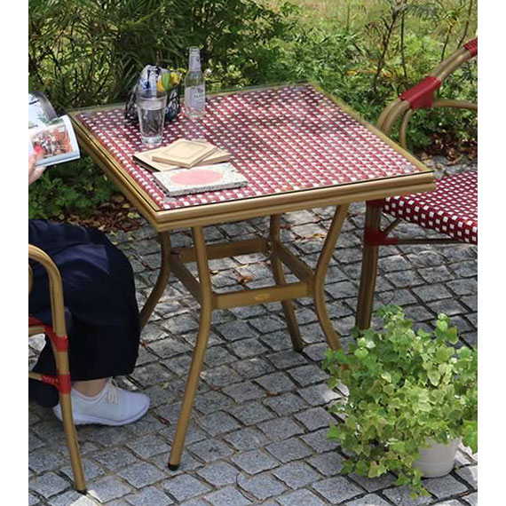 [送料無料]スクエアテーブル単品販売「プレジール」 レッド( PLS-S70-RED)自宅がパリのオープンカフェに。新婚旅行で行ったヨーロッパの街並み。雑誌で見かけた素敵なカフェ。「あの雰囲気を再現するにはどうしたらいいんだろう…」そんな風に考えている方も多いのではないでしょうか?実際に欧米のカフェで使われている「Pleaisir(プレジール)」シリーズは、バイヤーがたまたま休暇で訪れたフランスのニースにあるカフェで、一目ぼれしたものなのです。日本にはなかなかない形とカラーリングは、カフェの本場で長く愛用され、継承されてきた、スタンダードなデザイン。実際に座ってみると、見た目の高級感に反して軽く、急な雨でも水はけ抜群。テラス席に置きっぱなしでも華やかさを保つことができる高い機能性も、長く愛用されてきた理由だとわかるのです。※北海道・沖縄・離島は別途送料が必要となります。サイズ(約)幅70cm、奥行き70cm、高さ74.5cm重量(約)10.7kg材質アルミフレーム・PEラタン・強化ガラスカラーレッド仕上げ粉体塗装(フレーム部分)組立区分組立品組立目安時間2人で20分※写真はイメージです。■お届け地域について ・北海道、沖縄、離島へのお届けは、追加送料(実費)をいただきます。ご注文/お問い合わせをいただきましてからお見積りします。 ■メーカー直送品のため、下記サービスはお受けできません。・お届け時間帯指定(午前・午後のご希望は承りますが、状況によりずれる場合があります。夜間指定はできません)・一部の郡部での日曜・祝日指定・メッセージカードの添付