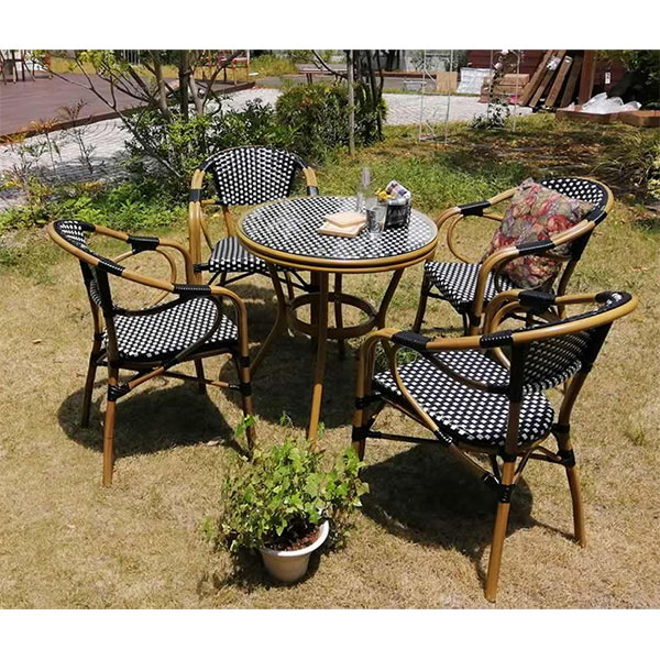 [送料無料]ラウンドテーブル5点セット「プレジール」 ブラック(PLS-R70-5PSET-BLK)自宅がパリのオープンカフェに。新婚旅行で行ったヨーロッパの街並み。雑誌で見かけた素敵なカフェ。「あの雰囲気を再現するにはどうしたらいいんだろう…」そんな風に考えている方も多いのではないでしょうか?実際に欧米のカフェで使われている「Pleaisir(プレジール)」シリーズは、バイヤーがたまたま休暇で訪れたフランスのニースにあるカフェで、一目ぼれしたものなのです。日本にはなかなかない形とカラーリングは、カフェの本場で長く愛用され、継承されてきた、スタンダードなデザイン。実際に座ってみると、見た目の高級感に反して軽く、急な雨でも水はけ抜群。テラス席に置きっぱなしでも華やかさを保つことができる高い機能性も、長く愛用されてきた理由だとわかるのです。※北海道・沖縄・離島は別途送料が必要となります。サイズ(約)テーブル/幅70cm、奥行き70cm、高さ74.5cmチェア/幅58cm、奥行き60cm、高さ82cm(座高45cm)重量(約)テーブル/8.7kgチェア/4kg(1脚)材質アルミフレーム・PEラタン・強化ガラスカラーブラック仕上げ粉体塗装(フレーム部分)組立区分テーブル/組立品チェア/完成品組立目安時間テーブル/2人で20分※写真はイメージです。■お届け地域について ・北海道、沖縄、離島へのお届けは、追加送料(実費)をいただきます。ご注文/お問い合わせをいただきましてからお見積りします。 ■メーカー直送品のため、下記サービスはお受けできません。・お届け時間帯指定(午前・午後のご希望は承りますが、状況によりずれる場合があります。夜間指定はできません)・一部の郡部での日曜・祝日指定・メッセージカードの添付