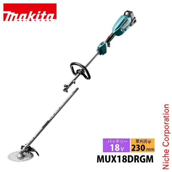マキタ(makita) 18V 充電式スプリット草刈機 バッテリー ・充電器付き[MUX18DRGM]▼先端アタッチメント(別売)の交換で多彩な作業に。18V仕様の軽量タイプ。刈払アタッチメント・バッテリBL1860B・充電器DC18RF・ツールバッグ付■特長●多目的工具スプリット豊富なアタッチメント(別販売品)で草刈りから枝払い、生垣の刈込み、耕うん、吹き飛ばし等、一つのモータで様々な作業に対応。●スプリットシリーズ最軽量モデル※軽量4.1kg(刈払アタッチメント+モータ部)で優れた操作性。※2020年11月現在マキタ調べ。マキタ充電式スプリット草刈機において。●ハイパワーブラシレスモータ搭載23mLエンジン式同等の軽快な使用感を実現(マキタ比)。●最適重心バランスモータを後方にレイアウト。先端部が軽く、エンジン式同等の最適重心バランス。軽快な操作性を実現。●キックバック時に刃物がストップ※キックバック(跳ね返り)を起こした時に発生する、急激な回転数の低下を検知し、刃物を素早く停止。※ 障害物に不意に当たった時に生じる跳ね返り。 注意:本機能はキックバックそのものを防止するものではありません。●ボタン2段変速+無段変速トリガスイッチアタッチメントや作業環境に応じた回転数へ簡単にコントロール可能。●防滴・防じん「アプト」過酷な作業環境から本機を守り抜く。※注意:水や粉じんによって故障しないことを保証するものではありません。●アタッチメントは素早く簡単交換ロックレバーの操作で簡単に着脱出来ます。●スプリットなので持ち運びもラクラク分割できるので、車にもサッと積めて持ち運びラクラク。(ツールバッグはDRGMのみ標準付属品)その他の特長■定回転制御■主電源スイッチ+オートオフ■ソフトスタート&ソフトブレーキ■過負荷保護、発熱保護、過放電防止、機能付●タフロータリーハサミ刃アタッチメント(別販売品)上下刃の「低速」逆回転によるハサミ式切断で、石飛び軽減、道路ギワ等の草刈り等に最適。EM407MP(タフロータリーハサミ刃タイプ)1充電連続運転時間(無負荷時/参考値)高速 約15分低速 約16分●刈払アタッチメント(DZは別売)草刈作業にEM402MP(チップソータイプ)1充電連続運転時間(無負荷時/参考値)高速 約31分低速 約1時間●ナイロンカッタアタッチメント(別販売品)庭木、縁石付近の草刈作業にEM408MP(ナイロンコードタイプ)1充電連続運転時間(無負荷時/参考値)高速 約24分低速 約45分●畦刈ヘッジトリマアタッチメント(別販売品)畦の草刈りにEN421MP1充電連続運転時間(無負荷時/参考値)高速 約32分低速 約53分●ポールソー アタッチメント(別販売品)高枝のせん定にEY402MP(ガイドバー250mm)EY401MP(ガイドバー255mm)●ヘッジトリマアタッチメント(別販売品)生垣の刈込みにEN400MP(角度可変)1充電連続運転時間(無負荷時/参考値)高速 約30分低速 約50分EN410MP(角度固定)1充電連続運転時間(無負荷時/参考値)高速 約27分低速 約40分●ブロワアタッチメント(別販売品)落ち葉やゴミの吹き集めUB400MP1充電連続運転時間(参考値)高速 約10分低速 約13分●パワーブラシ アタッチメント(別販売品)凹凸面の汚れの除去BR400MP1充電連続運転時間(無負荷時/参考値)高速 約24分低速 約44分●パワースイープ アタッチメント(別販売品)平面汚れの掃き取りSW400MP1充電連続運転時間(無負荷時/参考値)高速 約21分低速 約40分●カルチベータ アタッチメント(別販売品)耕うん作業にKR401MP1充電連続運転時間(無負荷時/参考値)高速 約35分低速 約1時間KR400MP ※在庫僅少品●エッジャ アタッチメント(別販売品)芝生の切り込みに。芝生に切り込みを入れ、花壇や歩道などの境界の整備に使用。EE400MP1充電連続運転時間(無負荷時/参考値)高速 約33分低速 約56分 ■仕様【ハンドル部】 形状:ループハンドル【電源】直流18V【1充電あたりの連続運転時間】 高速:約31分(軽快チップソー使用時) 低速:約1時間(軽快チップソー使用時)【回転数[回転/分]】 高速:0〜7,000min-1 低速:0〜5,000min-1【製品寸法】長さ1,840×幅230×高さ175mm ※刈払アタッチメント含む【質量】4.1kg ※バッテリ含む。EM402MP装着時。チップソー、プロテクタ、肩掛けバンド等を除く。【標準付属品】チップソー、ブレードカバー、肩掛けバンド、保護メガネ、ボックスドライバ13-16、六角棒スパナ4、ツールバッグ、アクセサリバッグ、バッテリBL1860B、充電器DC18RF【適応バッテリ】●18VリチウムイオンバッテリBL1860B、BL1850B、BL1850、BL1840、BL1830B、BL1830、BL1820B、BL1815N、BL1815※※関連商品一覧※※マキタ(makita)カルチベータ アタッチメント KR401MP A-67309※国内仕様のメーカー純正品です。並行輸入品・互換品・再生品ではございません。※安全に商品をご使用いただくために、マキタ製充電式製品には、マキタ純正のバッテリー・充電器をご使用いただきますようお願いします。なお、当店では模倣品、互換品のバッテリー・電池パック、リサイクル修理されたバッテリー・電池パックのご使用に起因する事故・故障につきましては、一切の責任を負いかねますのでなにとぞご了承くださ