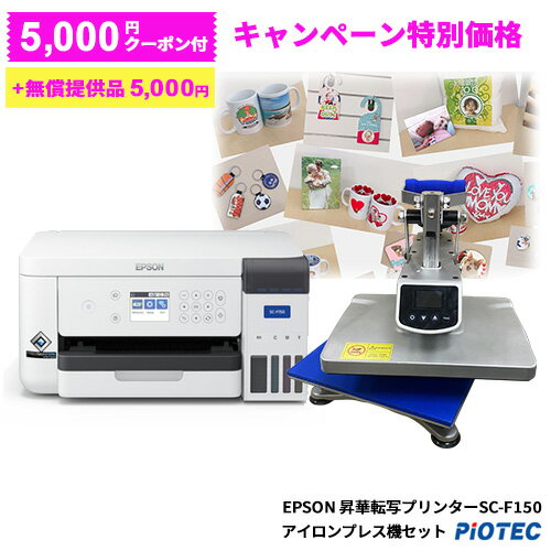 [5,000円クーポン付き] エプソン 昇華転写プリンター SC-F150 小型アイロンプレス機セット | A4サイズ対応 初心者におすすめ 昇華転写プリンター オリジナルノベルティ ハンカチ マグカップ ポリエステル スマホケース