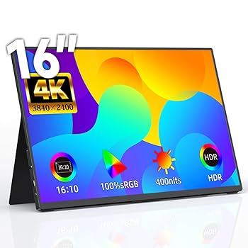 【中古】Upperizon モバイルモニター 16インチ 4K 非光沢IPS 100%sRGB 400nits高輝度 薄型 UHD 16:10(3840×2400) HDR対応 スタンドカバー付 スピーカー