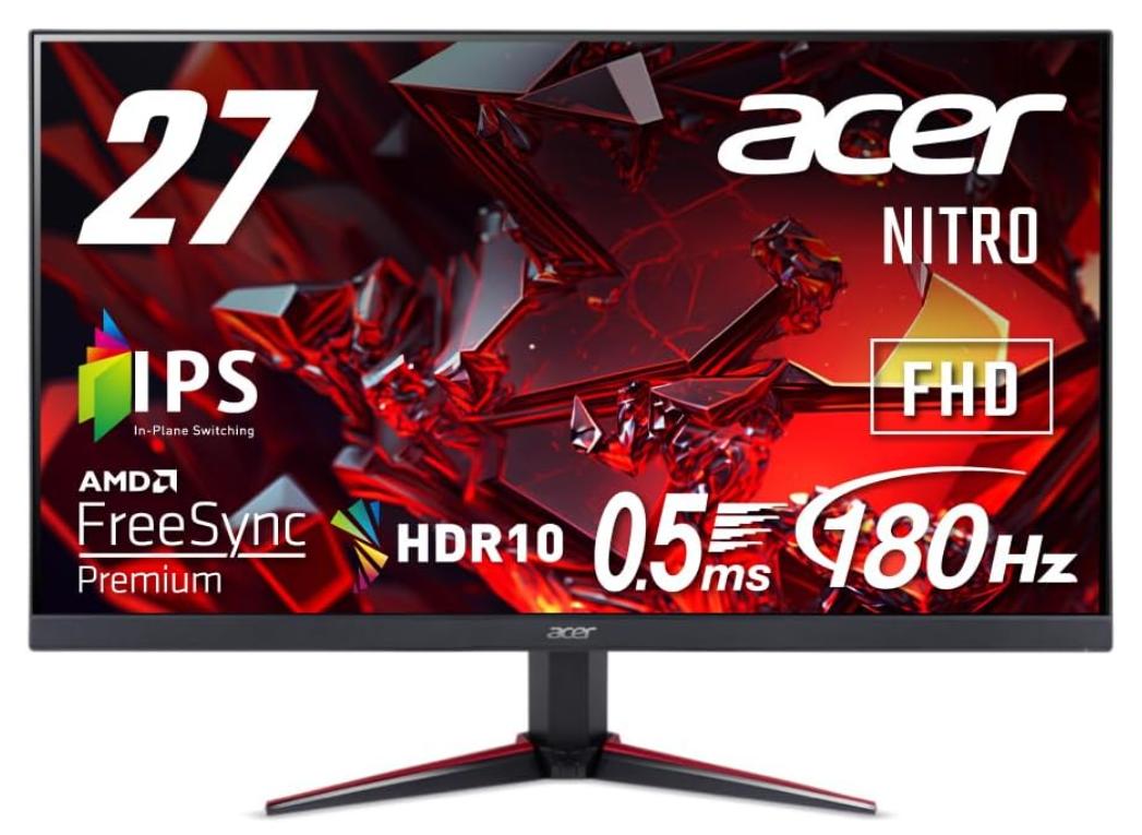 【新品】日本エイサー Acer Nitro ゲーミングモニター 27インチ IPS フルHD 180Hz 0.5ms PC/PS5/Xbox X/S向き ヘッドホン端子 スピーカー HDMI2.0 AMD FreeSync Premium HDR10 VG270M3bmiipx