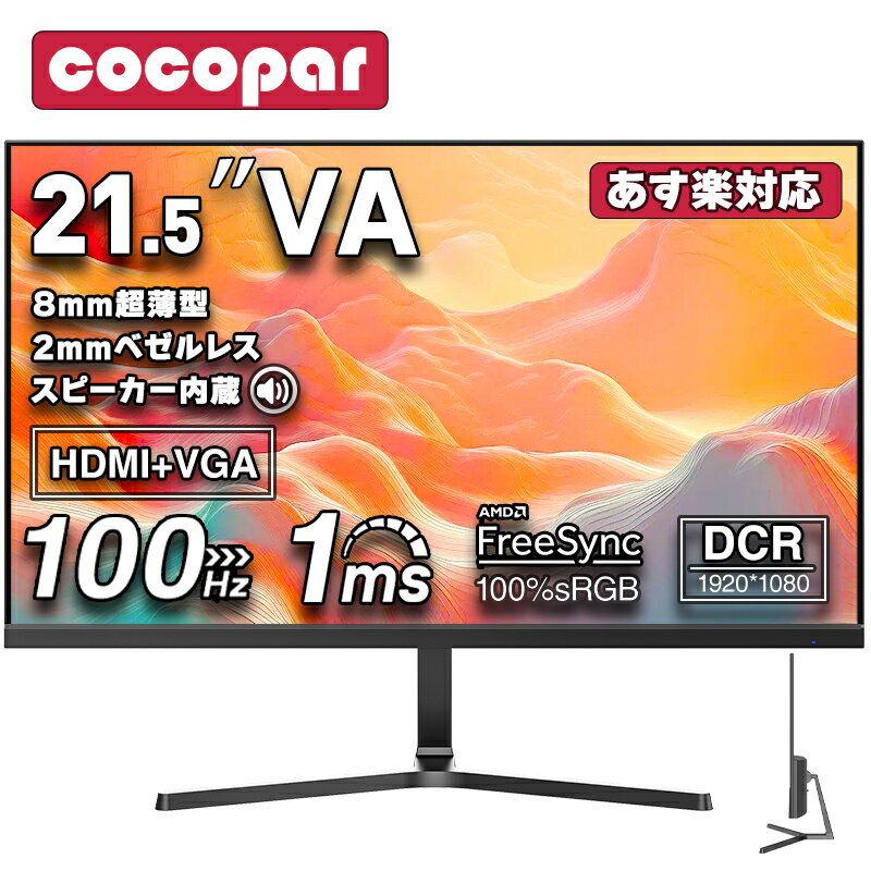 【期間限定1,959円値下げ】黒/白 [1+1年保証] モニター 21.5インチ 100Hz ゲーミングモニター 1ms応答 pcモニター 1920*1080 FHD パソコン モニター 非光沢 VA 角度調整 VESA Freesync pc/switch/ps4/ps5/xbox スピーカー内蔵cocopar HG-215