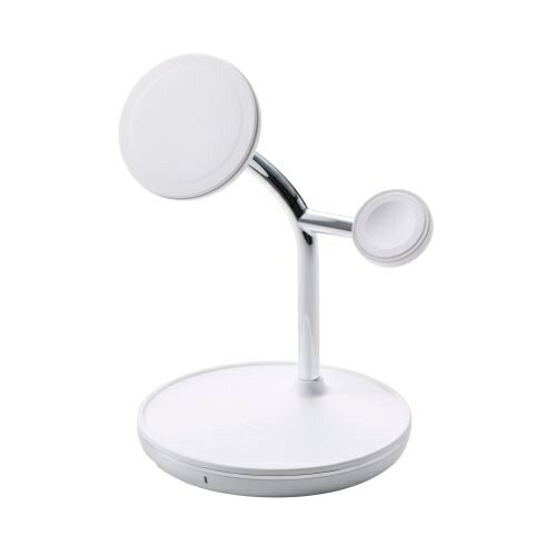 ワイヤレス充電器/スタンド型/マグネット対応/3in1/15W/MfM認証/Apple Watch高速モジュール/MfA認証/ホワイト ■対応するiPhone・Apple Watch・AirPodsを同時に充電できる、3in1 ワイヤレス充電スタンドです。最大出力15WでiPhoneを充電できます。 ■Apple正規認証であるMade for MagSafe/Apple Watchを取得しています。 ■対応機種:スタンド部MagSafe:MagSafe規格に対応したiPhone 、台座部:ワイヤレス充電に対応したAirPods、Apple Watch充電部:Apple Watch ※2025年4月現在 ■入力:最大12V/3Aまたは15V/2.4A(USB Power Delivery対応) ■出力:スタンド部MagSafe:5W/7.5W/15W、台座部Airpods向けワイヤレス充電:5W、Apple Watch:高速充電対応 ■入力端子:USB Type-Cポート ■外形寸法:幅約126mm×奥行約110mm×高さ約156mm ■重量:約340g ■使用温度範囲:0℃30℃ ■使用湿度範囲:30%80% ■LED発光色:通電時:3秒青点灯/待機時:消灯/充電時:青点灯/エラー時:青点滅 ※LED表示は台座部の充電状態のみを示します。 ■カラー:ホワイト ■ケーブル仕様:USB Type-C - USB Type-Cケーブル ■ケーブル長:約1.5m ■ケーブル色:ホワイト ■保証期間:1年間 ■保証対象地域:日本 ■認証規格:Made for MagSafe認証/Made for Apple Watch認証 ■付属品:ケーブル 詳細スペック 電気用品安全法(本体)非対象 電気用品安全法(付属品等)非対象