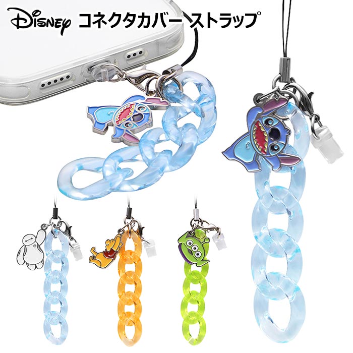 ディズニー コネクタカバー ストラップ チャーム コネクタ 充電口 差込口 カバー キャップ 保護 ダストカバー 防塵 スマホ スマートフォン タブレット アクセサリー 可愛い キャラクター スティッチ ベイマックス くまのプーさん エイリアン iPhone iPad android in-ma01979
