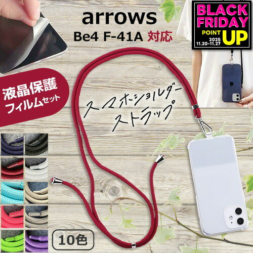富士通 arrows Be4 F-41A [5.6インチ] 機種で使える スマホショルダー 液晶保護フィルム付き スマホ 挟むだけ ストラップ 肩掛け 首掛け ストラップホルダー ネックストラップ jgs bgt 互換品 有償交換保証付き