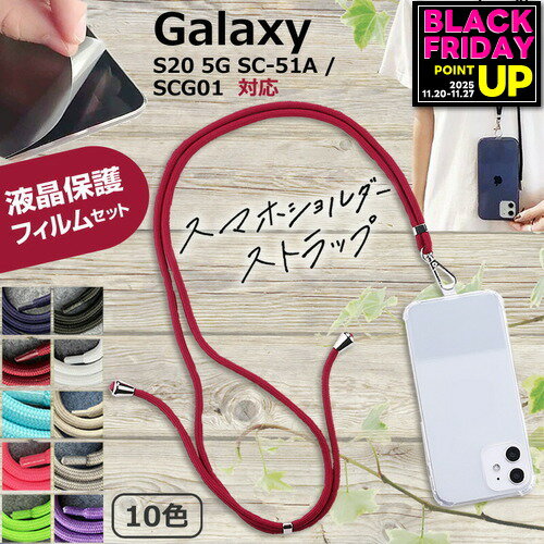 サムスン Galaxy S20 5G SC-51A / SCG01 [6.2インチ] 機種で使える スマホショルダー 液晶保護フィルム付き スマホ 挟むだけ ストラップ 肩掛け 首掛け ストラップホルダー ネックストラップ jgs bgt 互換品 有償交換保証付き