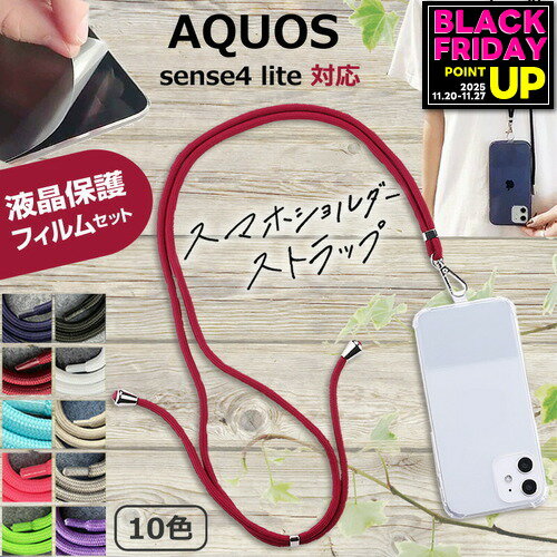 シャープ AQUOS sense4 lite [5.8インチ] 機種で使える スマホショルダー 液晶保護フィルム付き スマホ 挟むだけ ストラップ 肩掛け 首掛け ストラップホルダー ネックストラップ jgs bgt 互換品 有償交換保証付き
