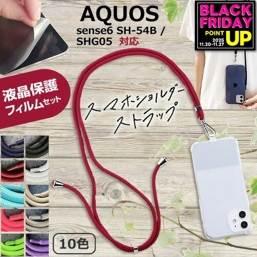 シャープ AQUOS sense6 SH-54B / SHG05 [6.1インチ] 機種で使える スマホショルダー 液晶保護フィルム付き スマホ 挟むだけ ストラップ 肩掛け 首掛け ストラップホルダー ネックストラップ jgs bgt 互換品 有償交換保証付き