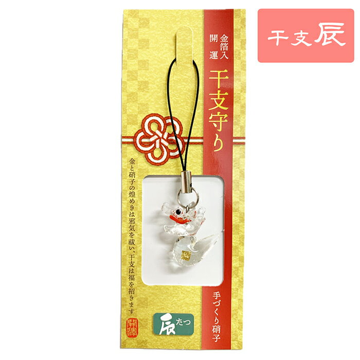 ストラップ 辰 干支 金箔 かわいい メール便OK お守り ガラス 縁起 開運 健康 学問 手づくり 干支守り 根付 ガラス細工 硝子 プレゼント ギフト 海外土産 龍 2024