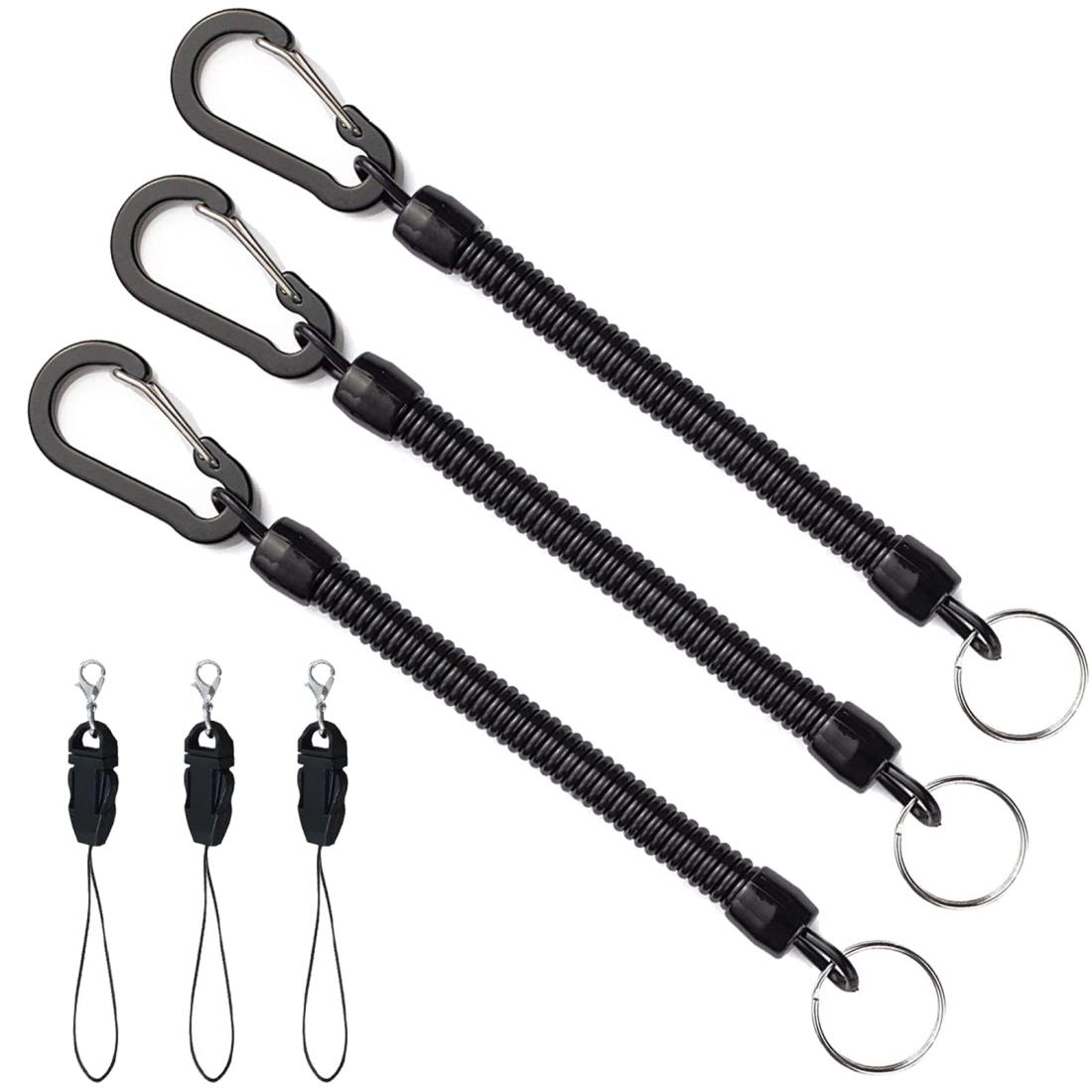 製品仕様:最大荷重:約5kg、最大長さ:約120cm。材質:コイルストラップは優れたTPU材料を採用し、長く使えます。適応範囲:鍵、携帯電話、スマホ、デジタルカメラ、工具などの落下/盗難/紛失防止に最適です。リングタイプ/ロック機能付きのスリングタイプ 3本セット、ニーズによりお使いいただけます。ワンタッチ着脱:カラビナとサイドリリース式ロックデザインで、押すだけに使える。