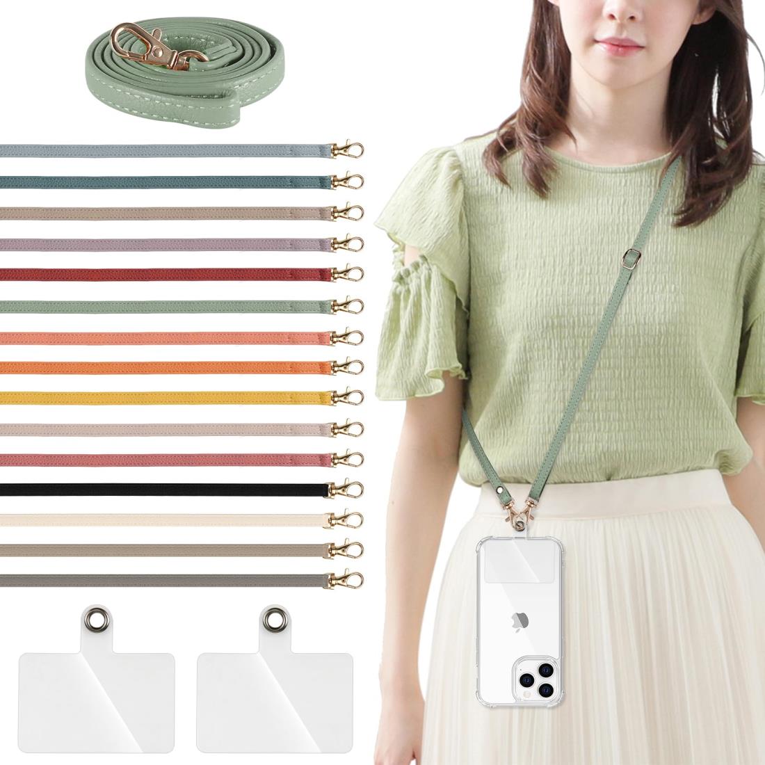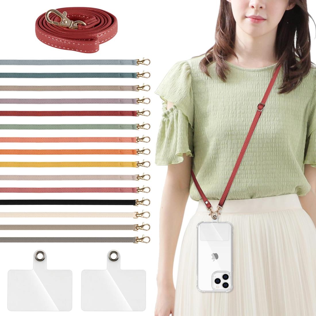 【優れたデザイン】高品質の合成皮革素材を使用しており、丈夫で耐久性があり、摩耗や引き裂きに強いです。ネックストラップの最大長さは約140cm、直径は約0.8cmです。長さは簡単に調節でき、首からかけたり、斜めにかけたりすることができます。幅は人間工学に基づいて設計されており、太すぎず細すぎず、軽くて快適です。【全機種対応】スマホケースの底面にある充電穴に差し込むタイプです。各種スマホケースだけでなく、鍵、USBメモリー、社員証、パスケースなどにも使用できます。ケープル充電やワイ ヤレス充電も邪魔しない。【装着・取り外し簡単&長さ調節可能】男女ともに使えるデザインで、ショルダーストラップ、ネックストラップ、スラントストラップなど、様々な使い方ができる携帯ストラップです。透明カードをケースに差し込めば、好みに合わせてストラップの長さを自由に調整でき、両手が自由に使えます。また、簡単に取り外すことも可能です。【落下・紛失防止】着脱が簡単で、男性も女性も子供もストラップを首に掛けて、落下、盗難、紛失を防止することができます。携帯電話を持ち歩くだけでなく、画面を見たり、電話をかけたり、写真を撮ったりすることもすぐにできます。 実用性が優れているので、普段使いだけでなく、アウトドアやフェスなどでも実用性を発揮します。