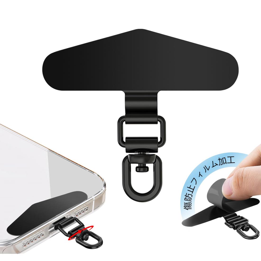 ANZOBEN スマホストラップ ストラップホルダー スマホ 携帯ストラップホルダー 丈夫 20kgまでの荷重量 回転 充電出来る 全機種対応 落下紛失防止 三角形 (ブラック)