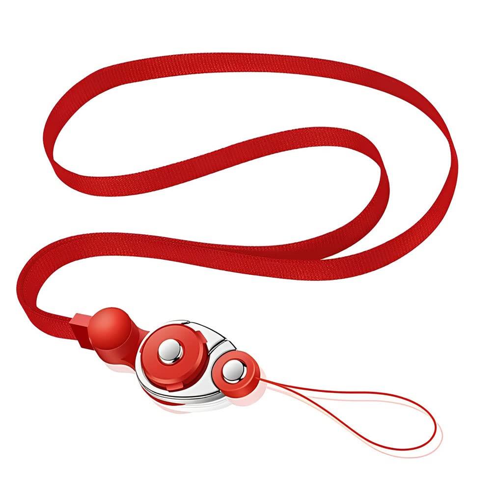 [サムコス] ネックストラップ 首掛け スマホ ストラップ 吊下げひも スマホ ショルダーストラップ 忘れ物防止 携帯ストラップ 脱着式 ブラック (レッド)