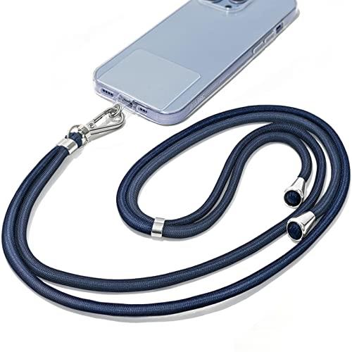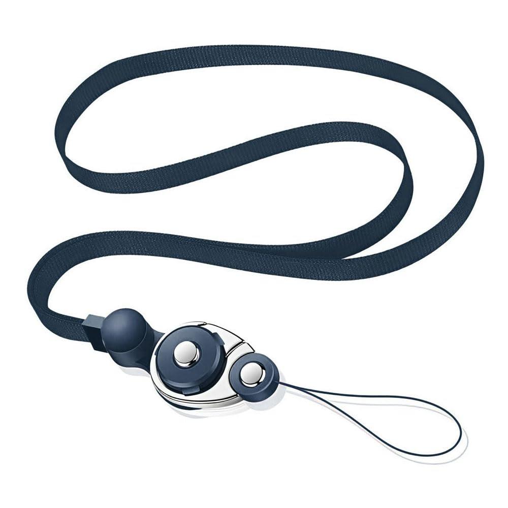サムコス ネックストラップ 首掛け スマホ ストラップ 吊下げひも スマホ ショルダーストラップ 忘れ物防止 携帯ストラップ 脱着式 ブラック (紺色)
