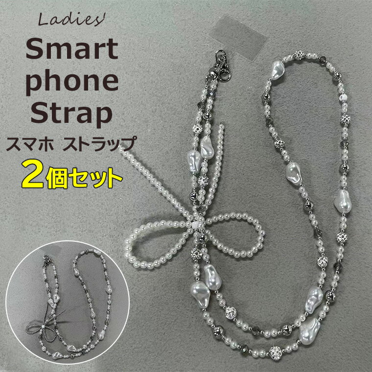 スマホケースに挟むだけで使える ♪ショルダー キーホルダー チェーン キーホルダー シューピアス バッグ用アクセサリー スマホストラップ 携帯ストラップ ビーズ アクセサリー リボン スマホショルダー 紐 シルバー
