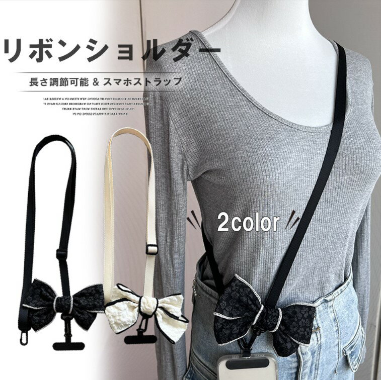 ポケットがない日も持ち運び便利!2色展開 2本セット スマホストラップ ショルダー スマホチェーン 落下防止 肩掛け 首掛け 付け替え リボンストラップ バッグストラップ