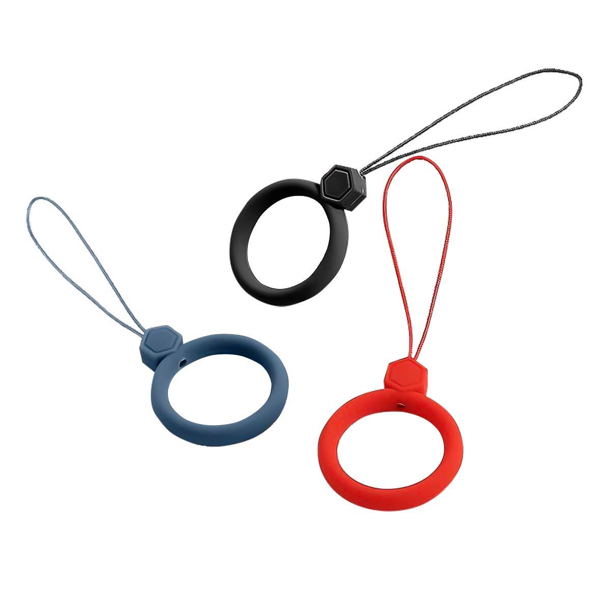 CinoCase フィンガーストラップ スマホ ストラップ 3本入り リングストラップ 携帯 落下防止 ブラック レッド サファイアブルー