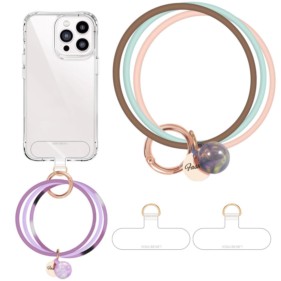 [UKON] スマホストラップ スマホシリコンリング おしゃれな携帯ストラップ シンプル 落下防止 着脱簡単 全機種対応 三色組み合わせ パッチ2枚付き (紫色)