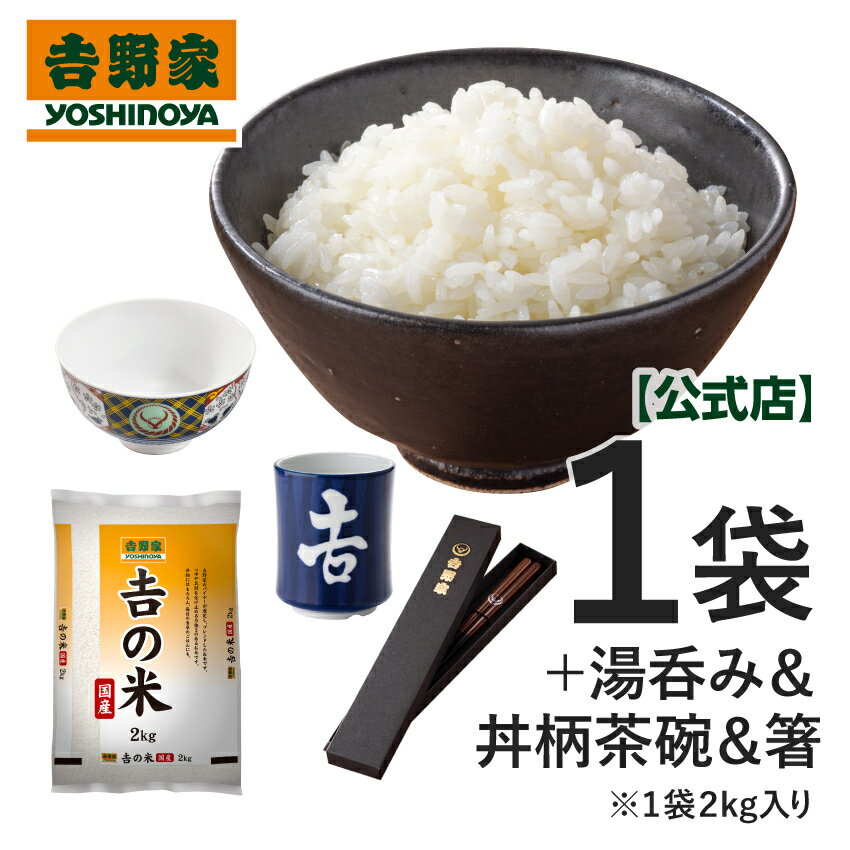 \令和7年産の新米/ 吉野家 公式 【常温】国産「吉の米」 2kg(1袋)+茶碗・湯呑・箸 各1【冷凍商品/メール便商品同時購入不可】2kg 国産米 新米 令和七年 米 精米 お米 おこめ 白米 ギフト プレゼント お歳暮 お年賀 令和7年産 新米使用